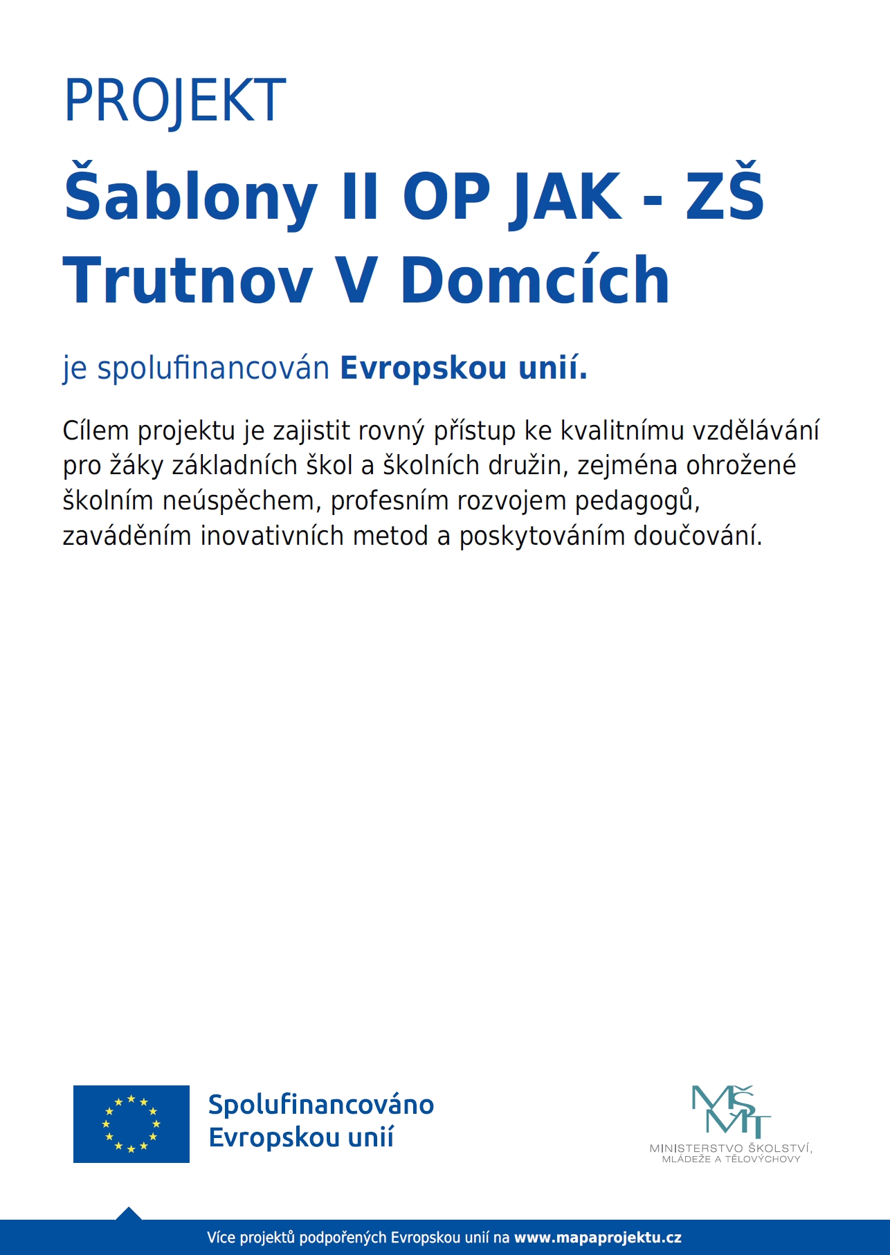 Našim cílem je nejen zdokonalování výuky, ale také zvelebování prostředí, ve kterém vaše děti vzděláváme a vychováváme. Uvědomujeme si totiž, že prostředí má obrovský vliv na pohodlí dětí a tím i na kvalitu vstřebávání nových vědomostí.