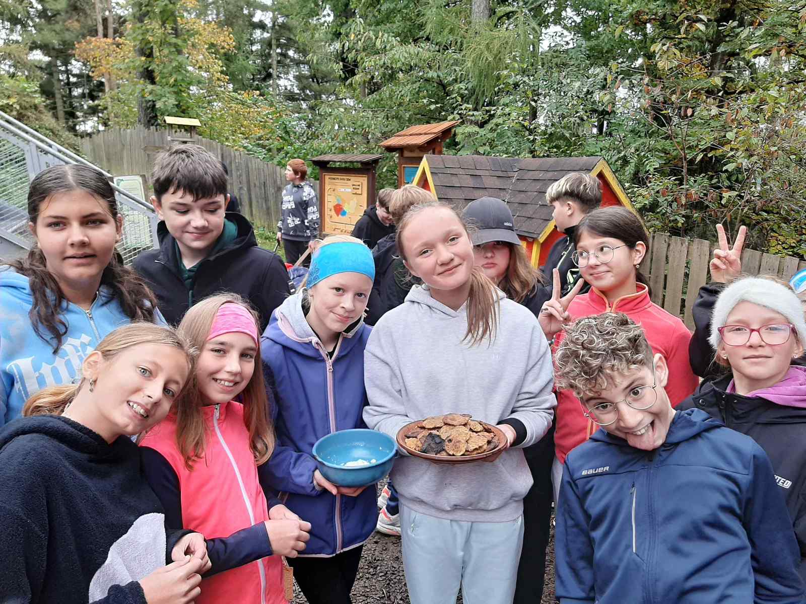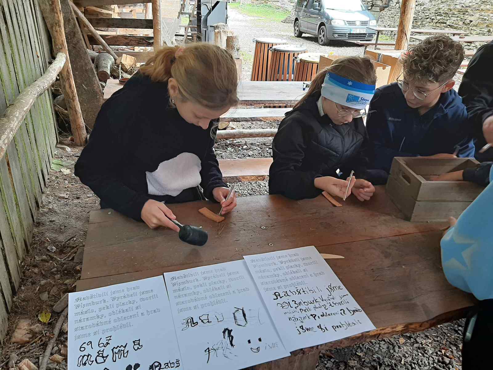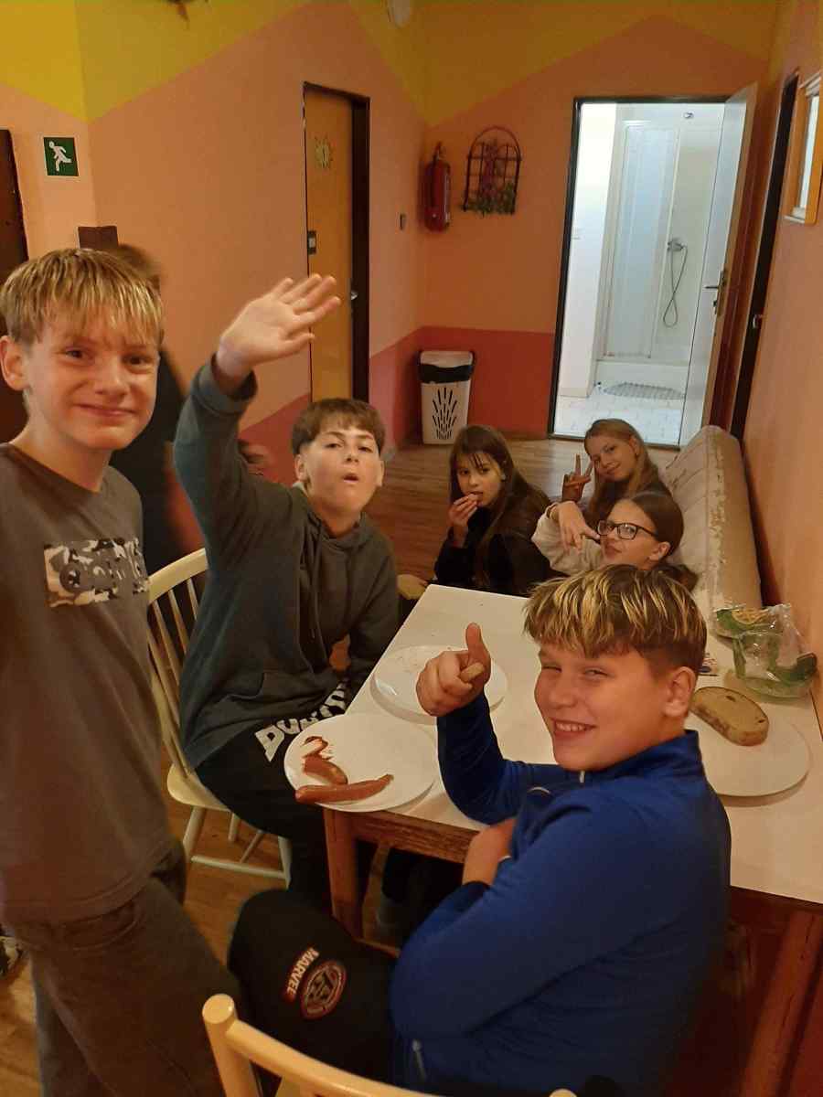 V pondělí 6. 10. 2025 se žáci šestých ročníků vypravili na první společnou akci s novými třídními učitelkami a asistentkami. Adaptační kurz se odvíjel v duchu her a zábavy, ale také vzdělávání. První zastávkou se stala hvězdárna v Úpice. Pro žáky byl připraven program o základech astronomie. Měli příležitost podívat se do dalekohledů, pozorovat Slunce či se seznámit s meteorologií. Z hvězdárny jsme se přesunuli do naší cílové destinace – Havlovic. Po ubytování v Sokolovně následovaly sportovní hry na místním sportovišti. Velmi oblíbený se stal tenis a minigolf. Spousta chlapců si zahrála fotbal a jiní si vyzkoušeli ping-pong. Po celou dobu nám výtečně vařili v místní škole. K večeru se uskutečnily týmový hry v tělocvičně místní Sokolovny. Úterní program pro nás připravilo sdružení Vízmburk. Na hradě, který jsme si s průvodcem prohlédli, byly připraveny čtyři stanoviště, kde byla prověřena fyzická zdatnost i obratnost v kuchyni. Vlastnoručně upečené placky a stlučené máslo bylo pochoutkou pro všechny mlsné jazýčky. Žáci si odnesli na památku kožený přívěšek a vyzkoušeli si psaní středověkého písma brkem. Zážitek umocnila krásná procházka po okolí hradu, vyhlídka na lom Kráčmerka a spolupráci prověřilo stavění domečků v lese. Poslední třetí den si obě třídy vzájemně připravily šipkovanou okolo havlovického rybníka a v Sokolovně si uvařily malý oběd.